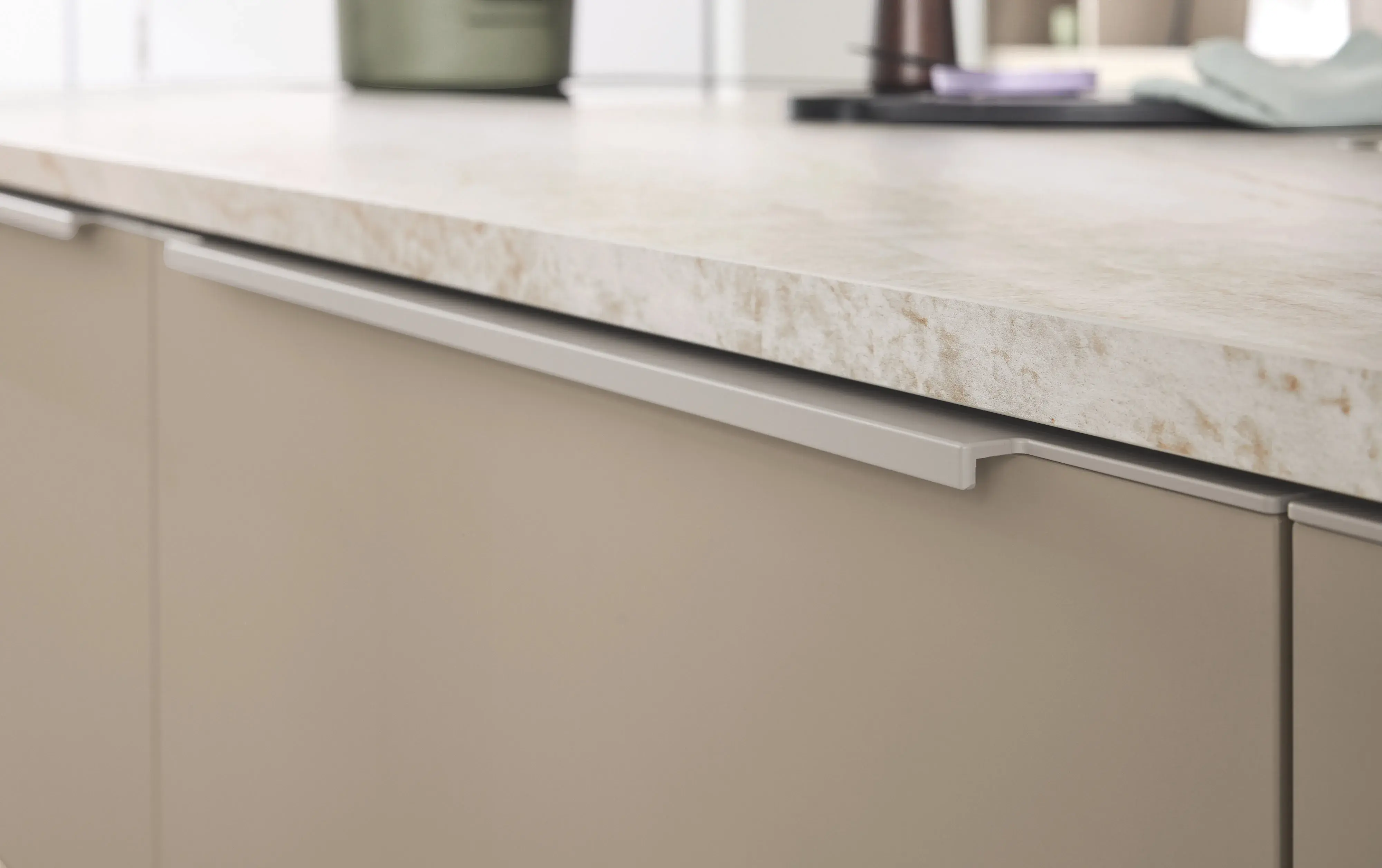 Eine absolute Neuheit ist die aufgesetzte, lackierte Griffleiste. Hier in Yoko Silk. Sie kann in allen Standardfarben sowie in Sonderfarben von RAL, Sikkens und ColorNetwork lackiert werden. Die gute Lackhaftung, die Farbtiefe und der perfekte Auftrag wären maschinell nicht möglich: Die hochwertige Lackierung wird in mehreren Arbeitsgängen von Hand aufgetragen. Das Ergebnis: eine allseitig edle, samtige und gleichmäßige Lackoberfläche, die sich leicht abwischen lässt und hygienisch gut sauber zu halten ist.
